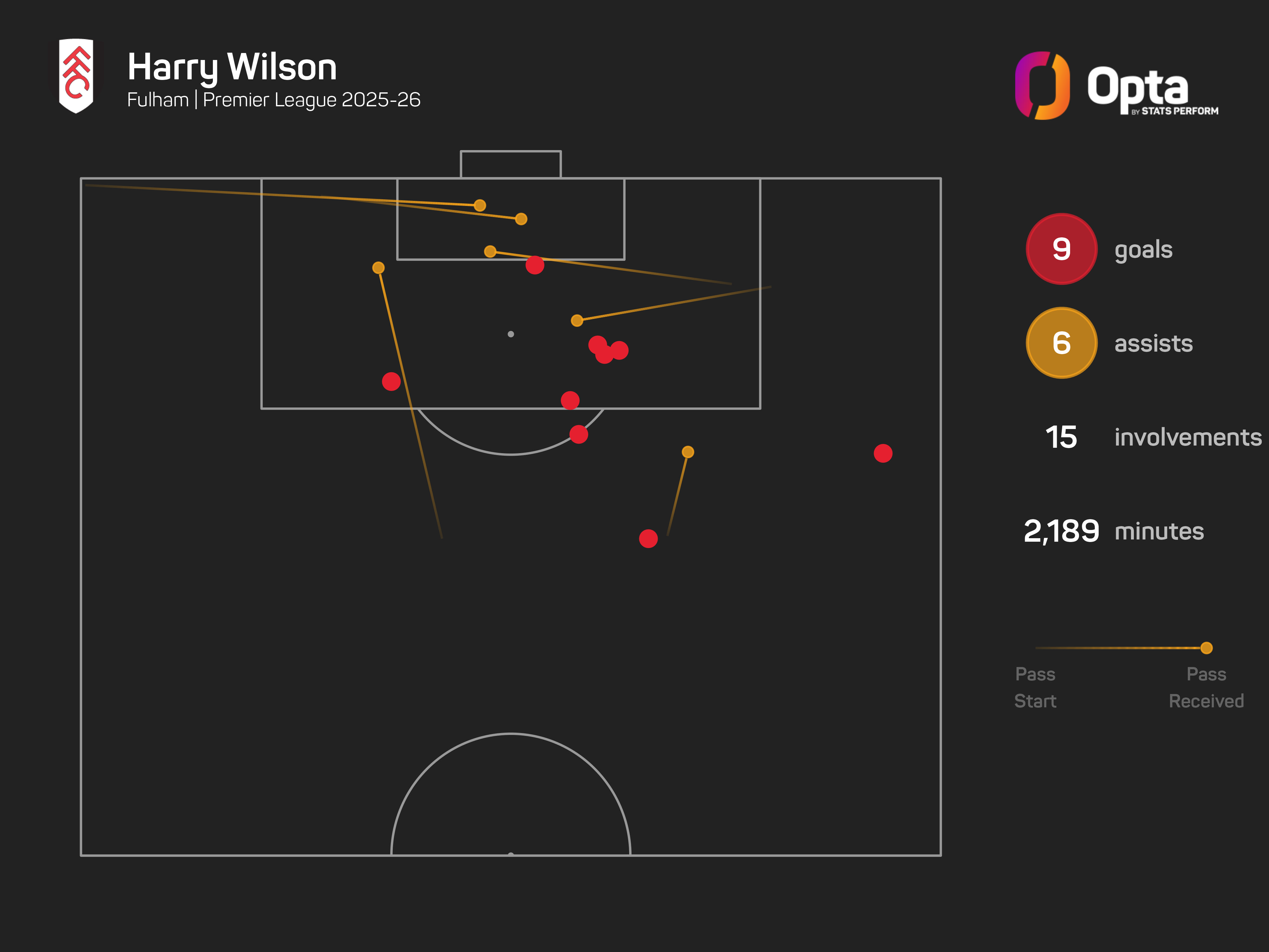 Wilson is Fulham's top scorer in the Premier League this season with nine goals. He could be just the second British player to reach double figures for the Cottagers in a single campaign, after Andrew Cole in 2004-05 (12).