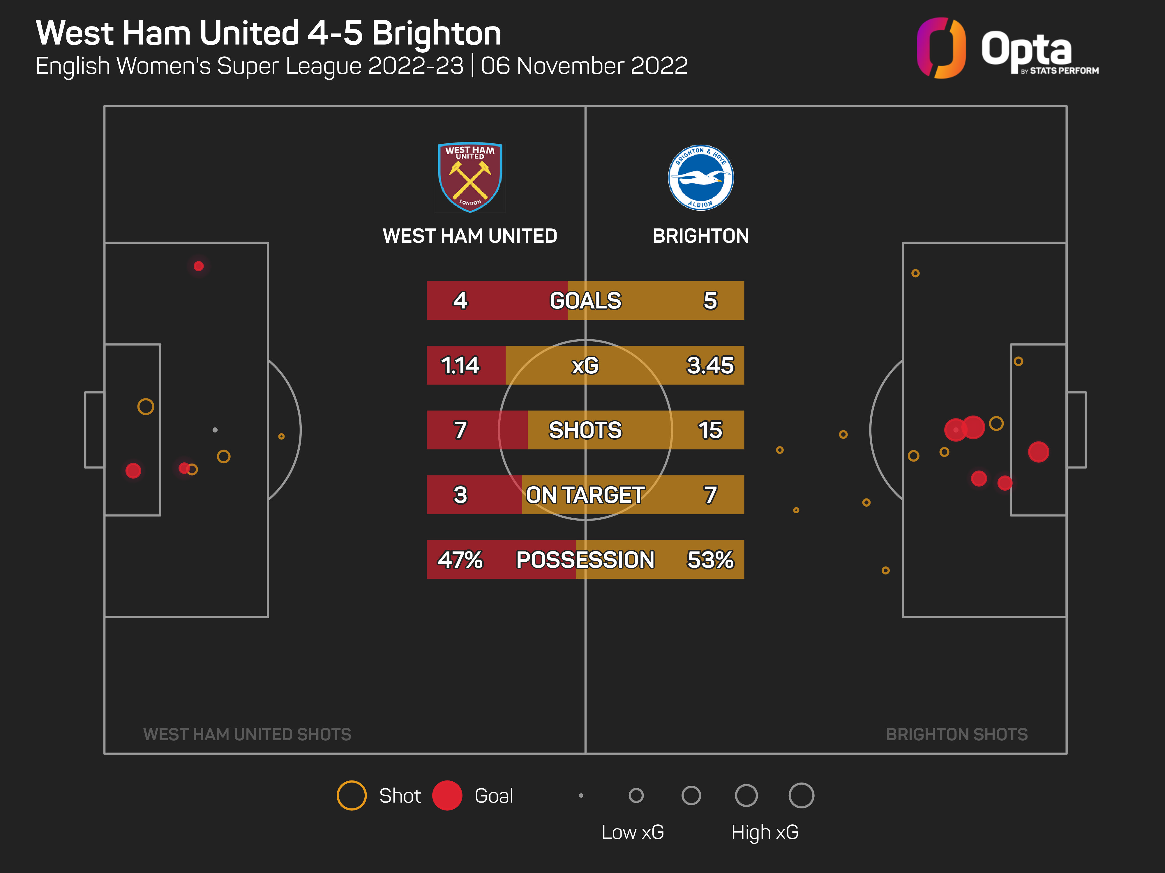 West Ham are, however, looking to win consecutive WSL home games against Brighton for the first time following a 3-1 victory in this fixture last season. Their last home loss to the Seagulls in the league came in November 2022, becoming the only team to score four times at home and still lose in the WSL (4-5).