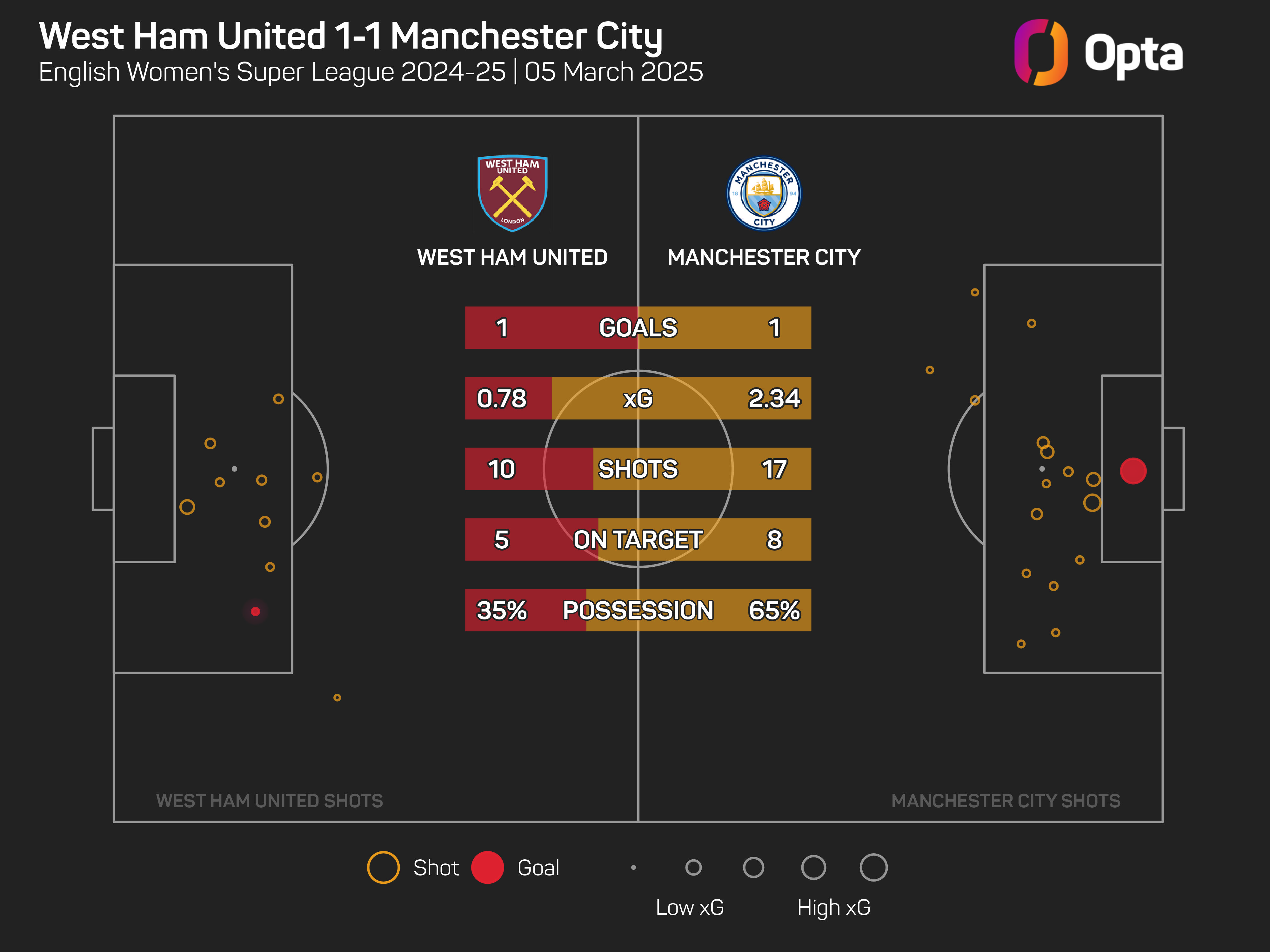 City have won 11 of their 13 games against West Ham in the WSL, though they did draw 1-1 with the Hammers in the most recent league meeting in March 2025 (L1).
