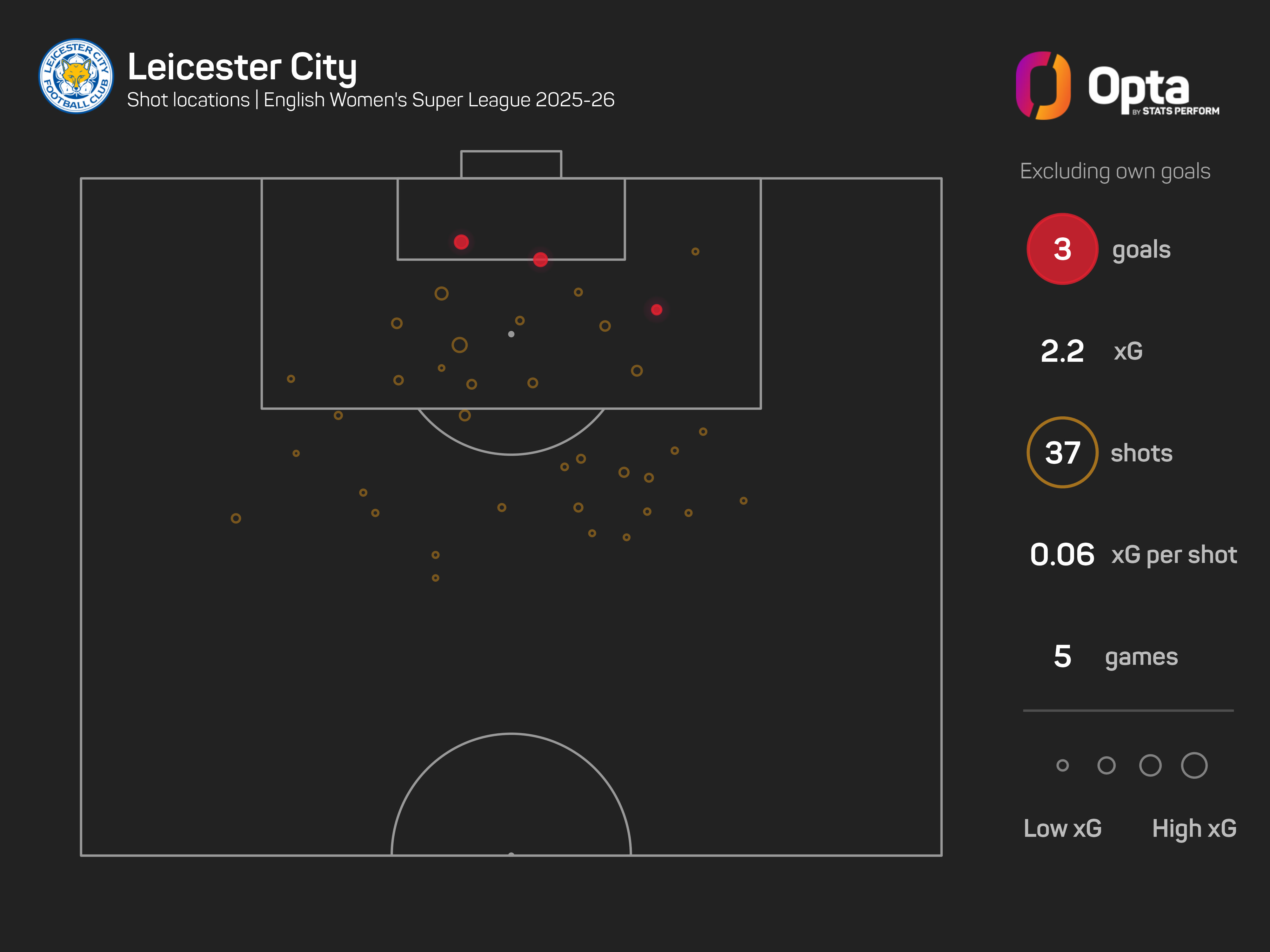 Leicester have recorded the lowest expected goals (xG) tally in the WSL this term (2.2), although their three goals are still more than they had at this stage last season (two).