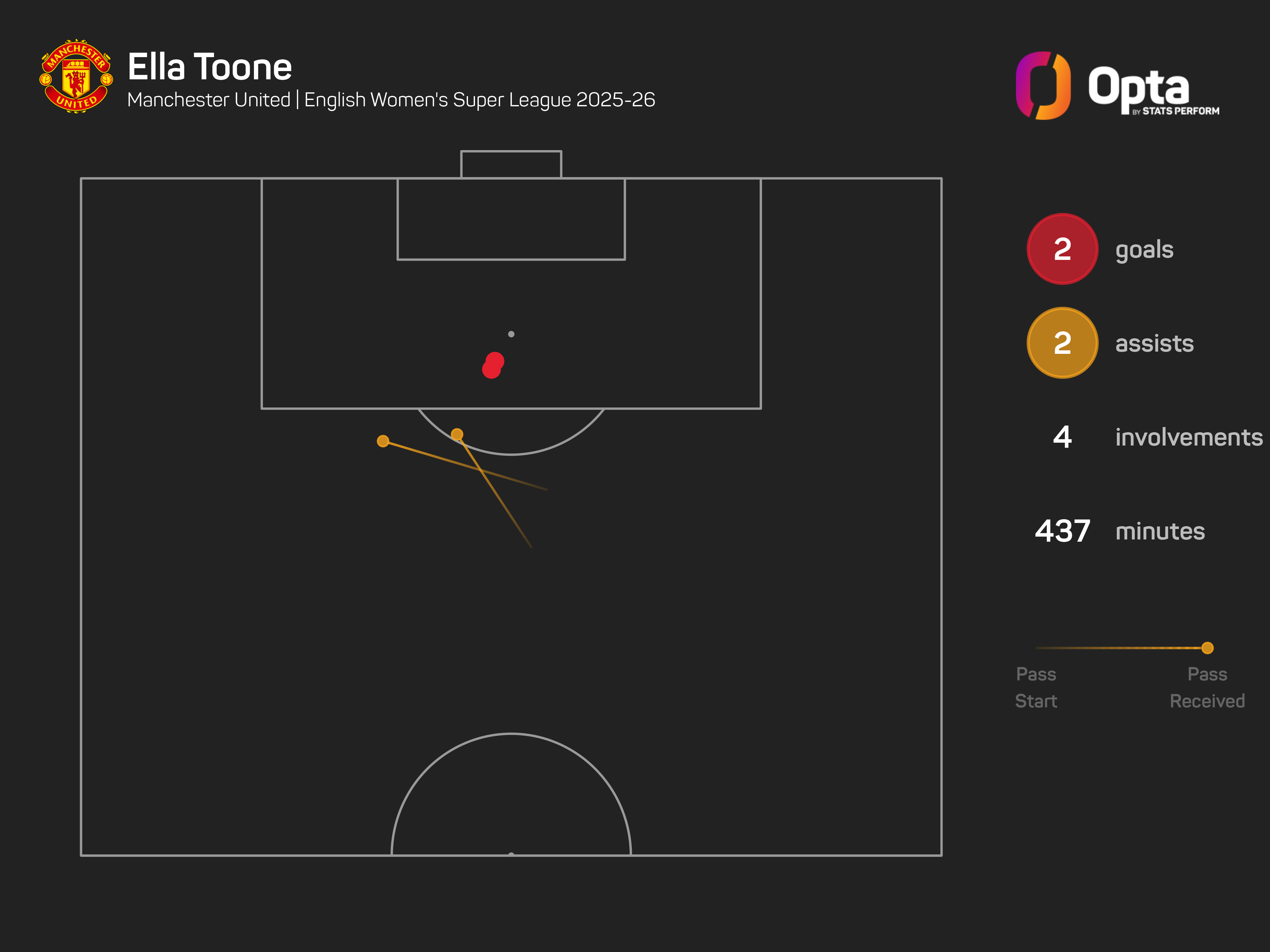 Skinner's team also have Ella Toone in their ranks, and no United player has been involved in more goals than the England international in the WSL this season (four, alongside Melvine Malard).