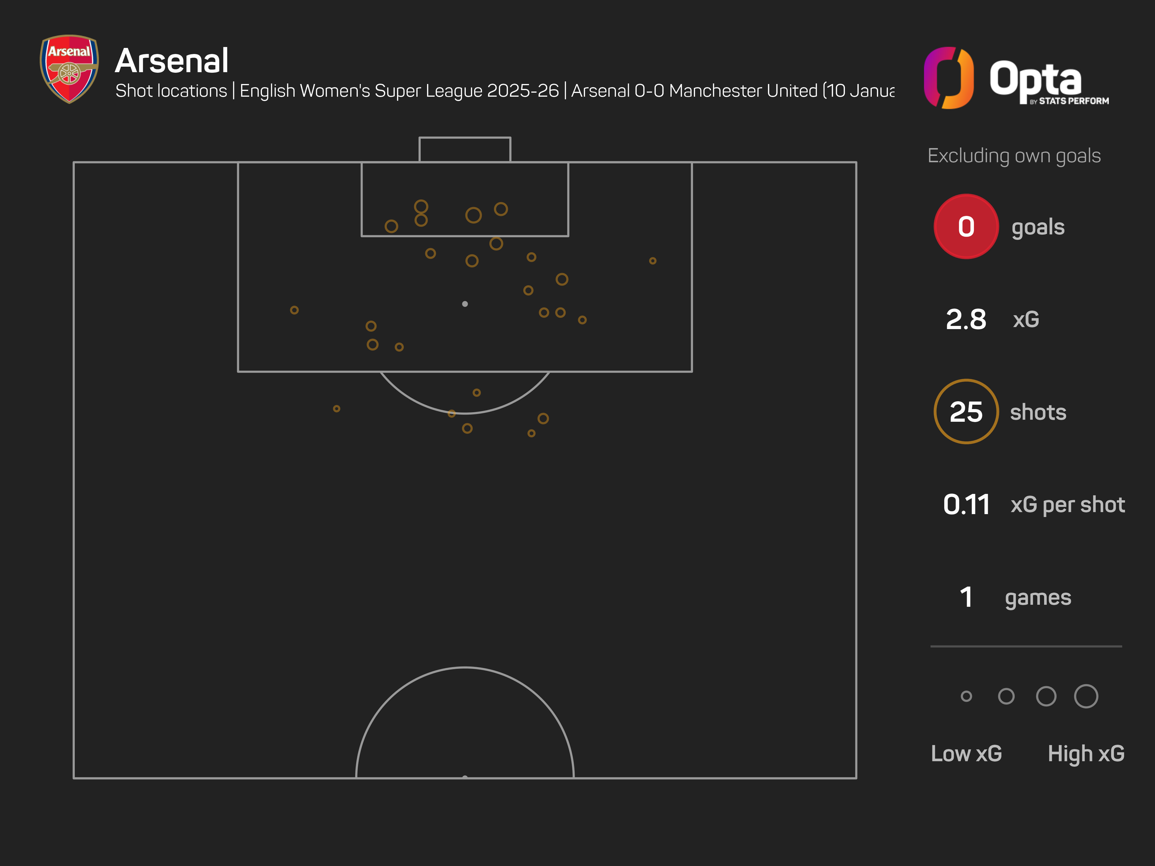 And the Gunners are in need of goals. They have failed to score in two of their last four WSL games, drawing 0-0 with both Spurs and Man Utd. They have a conversion rate of 11% in the league this season, their worst rate in a top-flight campaign since 2015 (10.3%).