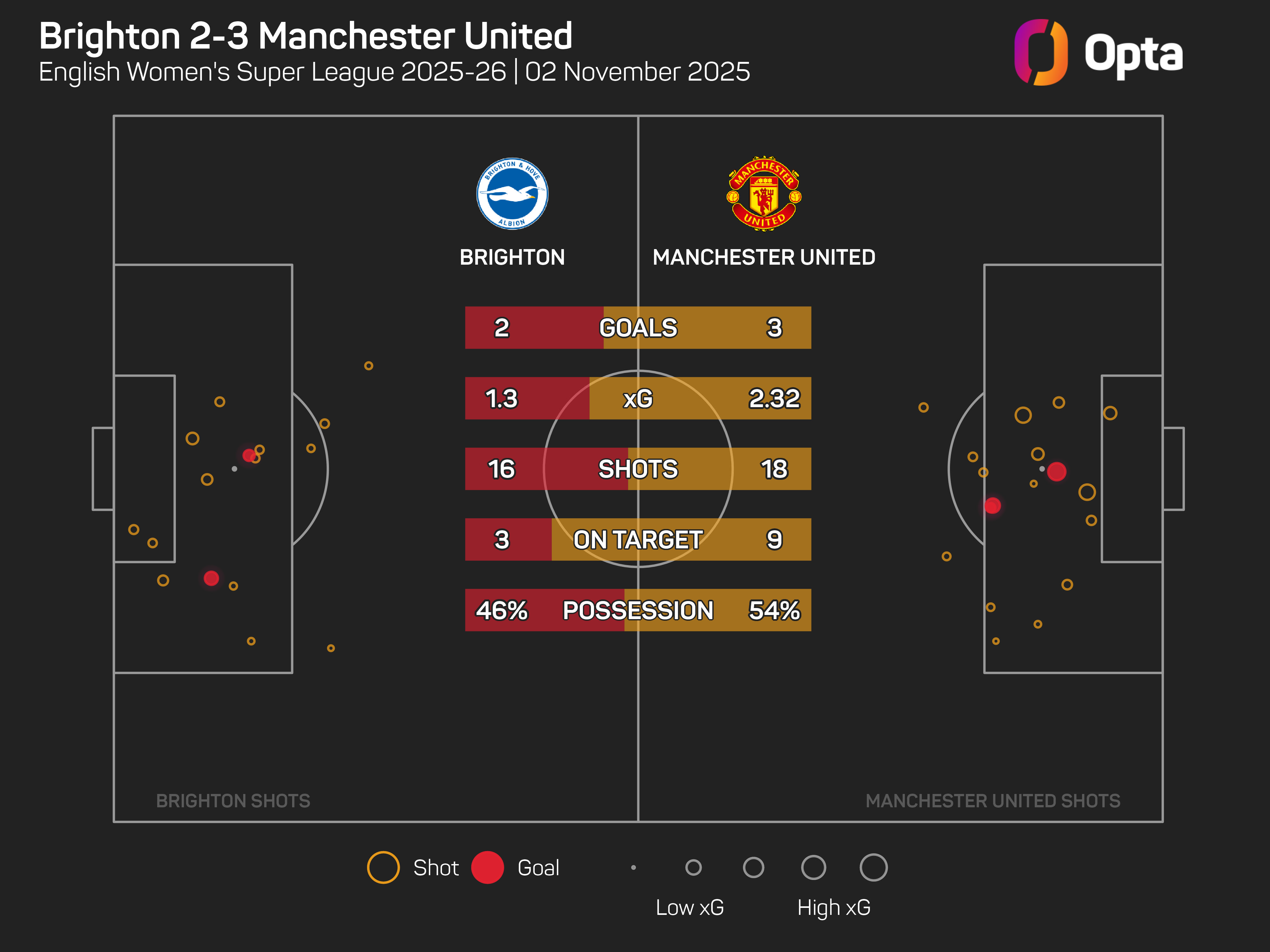 Manchester United held onto their unbeaten Women's Super League record by edging to a 3-2 victory over Brighton at Broadfield Stadium.