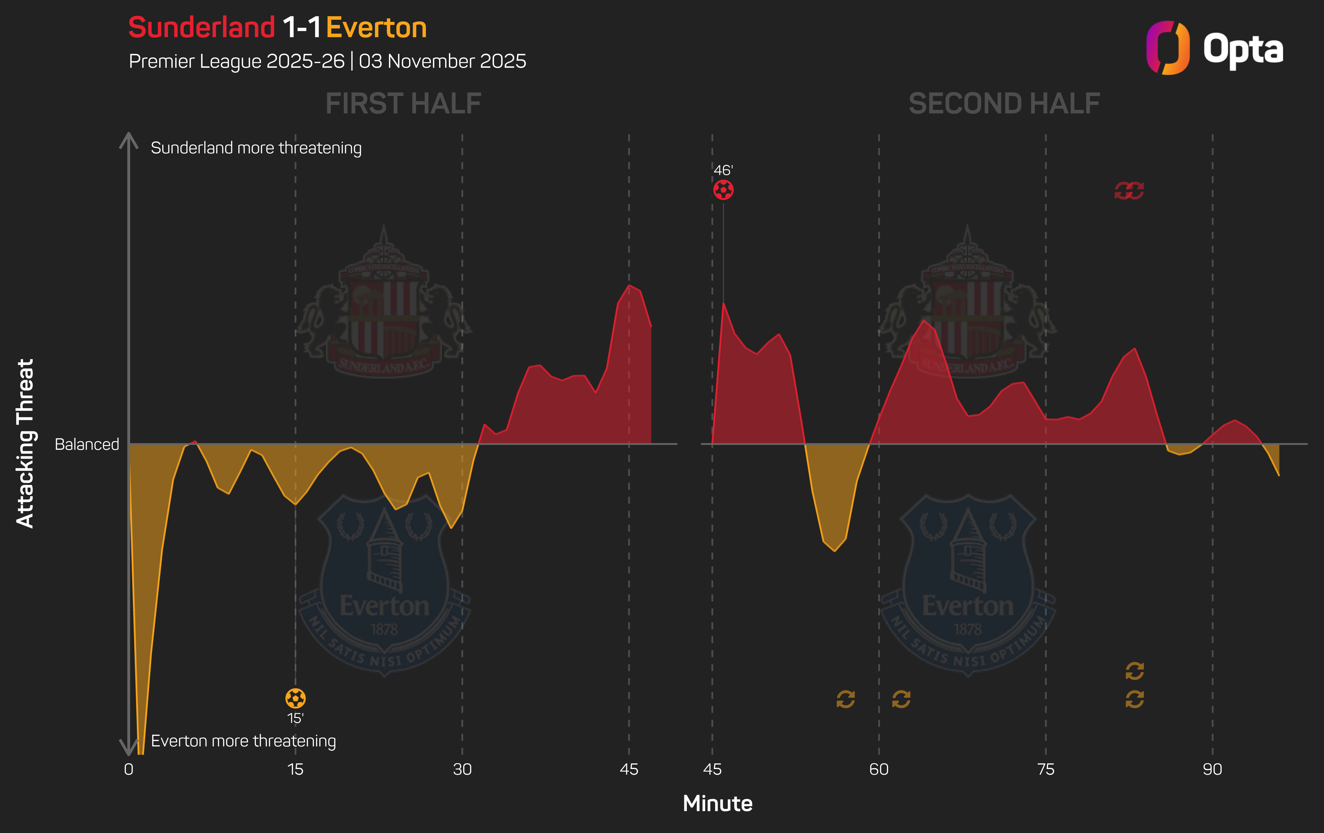 The Black Cats piled the pressure on in the second half, finishing with 17 shots overall, though they created just 1.1 expected goals (xG), with only three of those on target.
